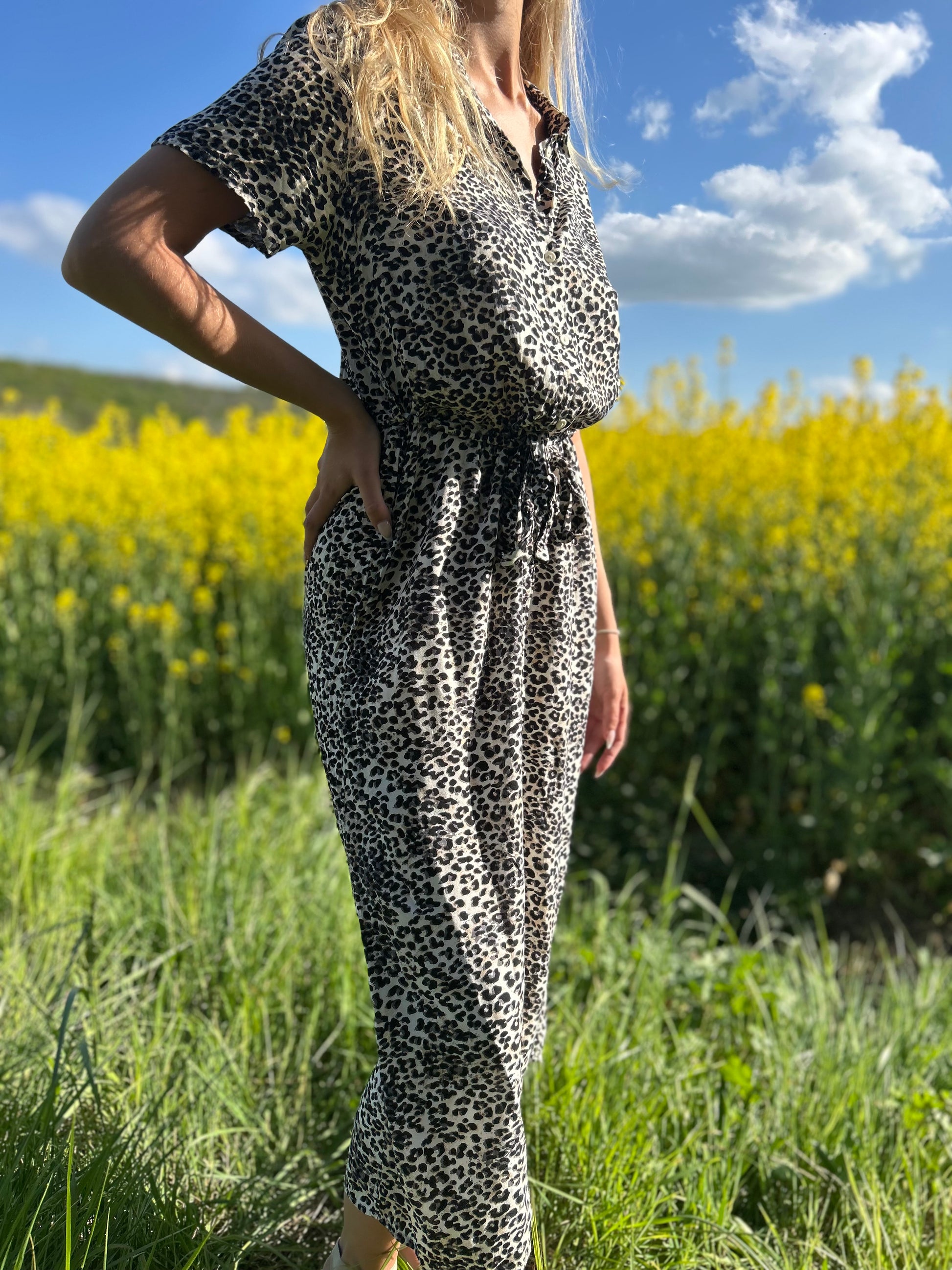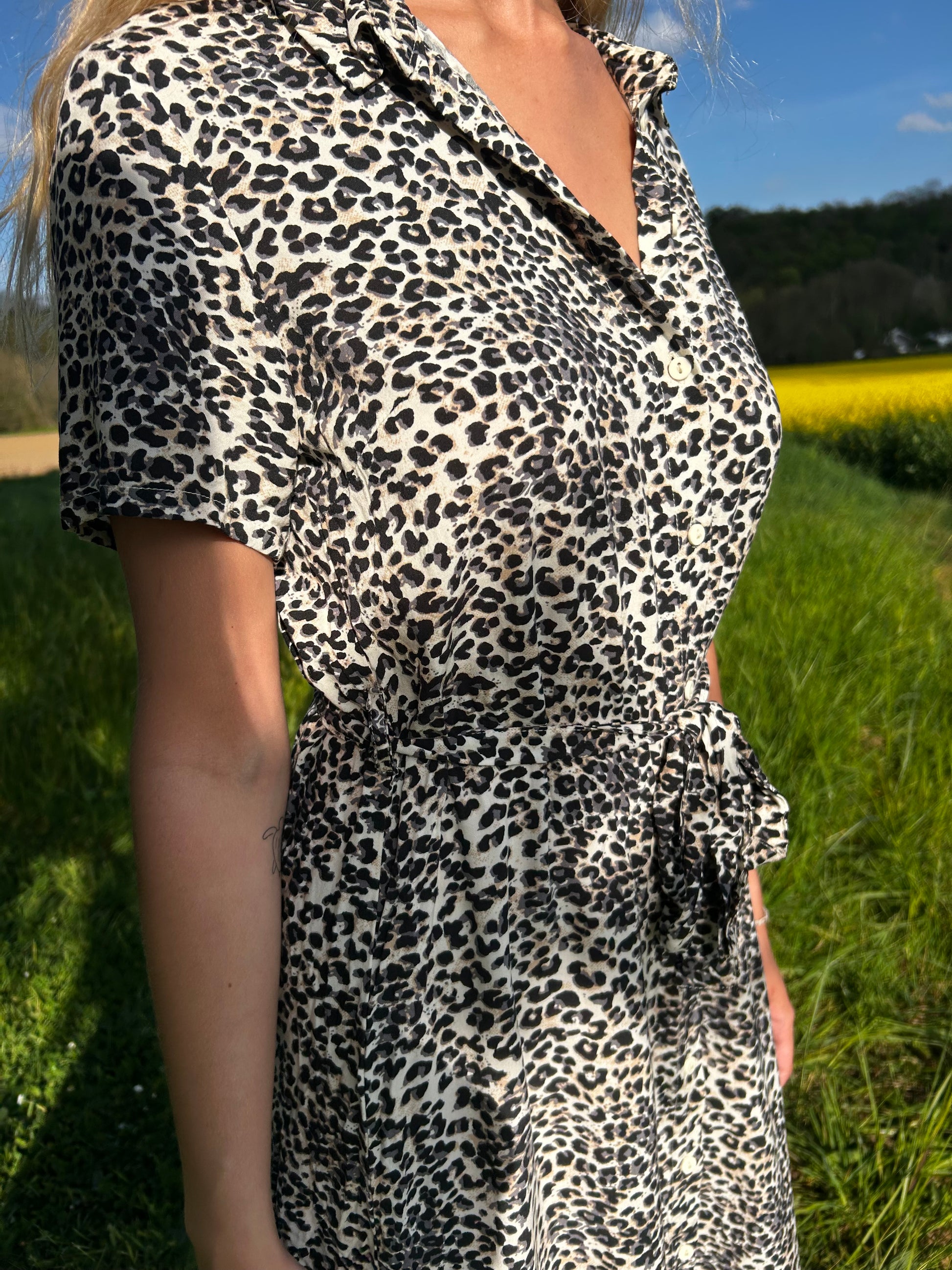 Robe avec ceinture à motif léopard